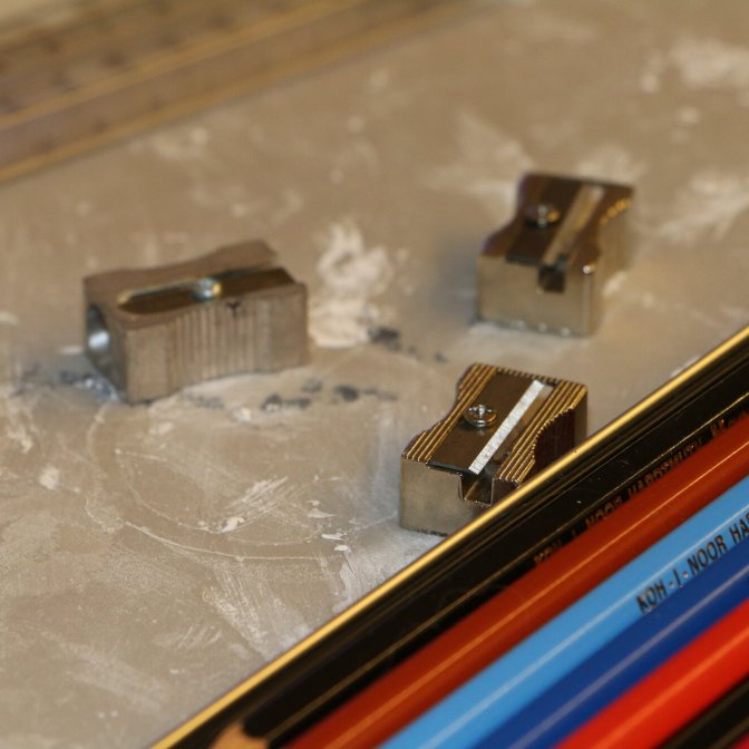 Låt oss ännu återvända till bildkonstsalen. Också bildkonstlärare Anni Halonen flaggar nämligen för gamla beprövade metoder, vid sidan av de möjligheter som den digitala utvecklingen fört med sig. Hon håller upp en blyertspenna.