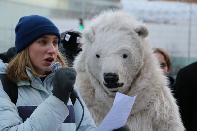 Klimatåtgärder, nu, nu, nu! Ropen skallar på riksdagshusets trappa då ett hundratal ungdomar samlas till klimatdemonstration. En av de som håller i taktpinnen är Catharina Korkman från Gymnasiet Grankulla samskola.